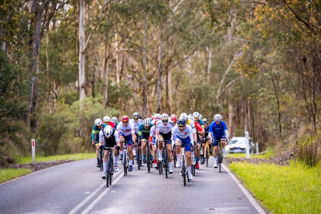 A bit of rolling terrain at the top and then the descent to Dean’s Marsh. Now we’d have about 30kms of fairly flat terrain ahead of us. We soon catch up with Ben and as we do I realise it was him. Once Ben is caught the pace is very relaxed, no urgency at all. I sit in there and try to be patient. I take a bit of shelter near the back of the group and get to see how even more riders are joining us from behind. 45kms into the race and I reckon there’s about 50 of us in the front group. Not good. The most selective climb in the race is already behind us and I’m still stuck with 50 other riders. My mental rehearsals for this race were all about being down to less than 20 riders here and hopefully less.